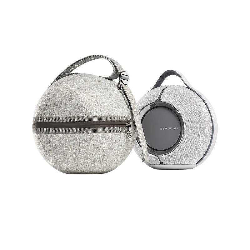 Devialet Mania Cocoon ist ein speziell entwickelter Schutz für Devialet Mania. Das speziell darauf abgestimmte Design passt perfekt zu den Konturen des Produkts. Durch den Griff lässt es sich leicht überallhin mitnehmen. Der tiefgezogene Filz schützt den Lautsprecher perfekt. Machen Sie ein charakteristisches Produkt von Devialet zu Ihrer Reisebegleitung.