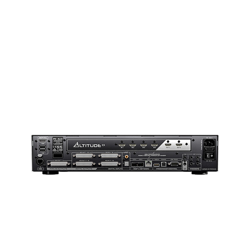 Der AltitudeCI unterstützt sowohl AES67 als auch DanteⓇ nativ und kombiniert die in DCI- und Pro-Audio-Umgebungen erforderliche Interoperabilität und Präzision mit der Einfachheit und Plug-and-Play-Integration, die Dante bietet, einschließlich der direkten Verbindung zu digitalen Verstärkern wie dem Amplitude16.
